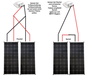 Unterschied Serieller und Paralleler Verdrahtung der Solarpanels