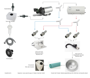 Wassersystem Skizze, Druckwasserpumpe mit Boiler