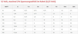 Kabelquerschnitte bei 12V