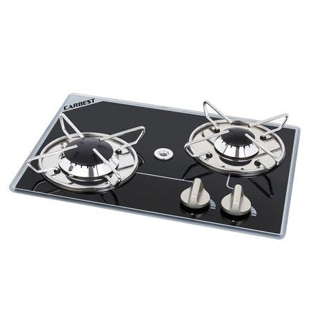 Hochwertiger Carbest Einbau-Gaskocher 2-flammig mit Zündsicherung und manueller Zündung.