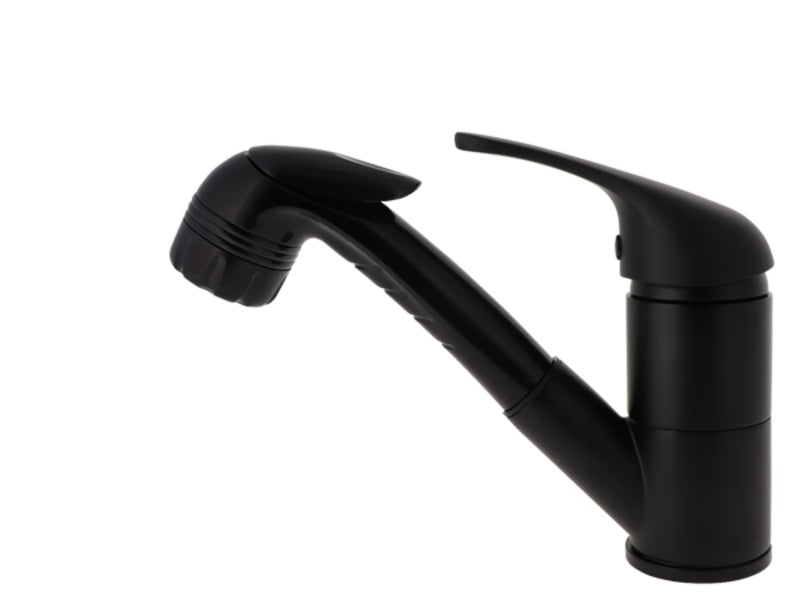 Höhe: 155 mm, Ø 50 mm Auslauflänge: 170 mm Schlauchlänge: 1200 mm Anschluss: Metallflexschläuche Ø 10 mm, 400 mm lang Montagebohrung: Ø 33 mm Befestigungsset